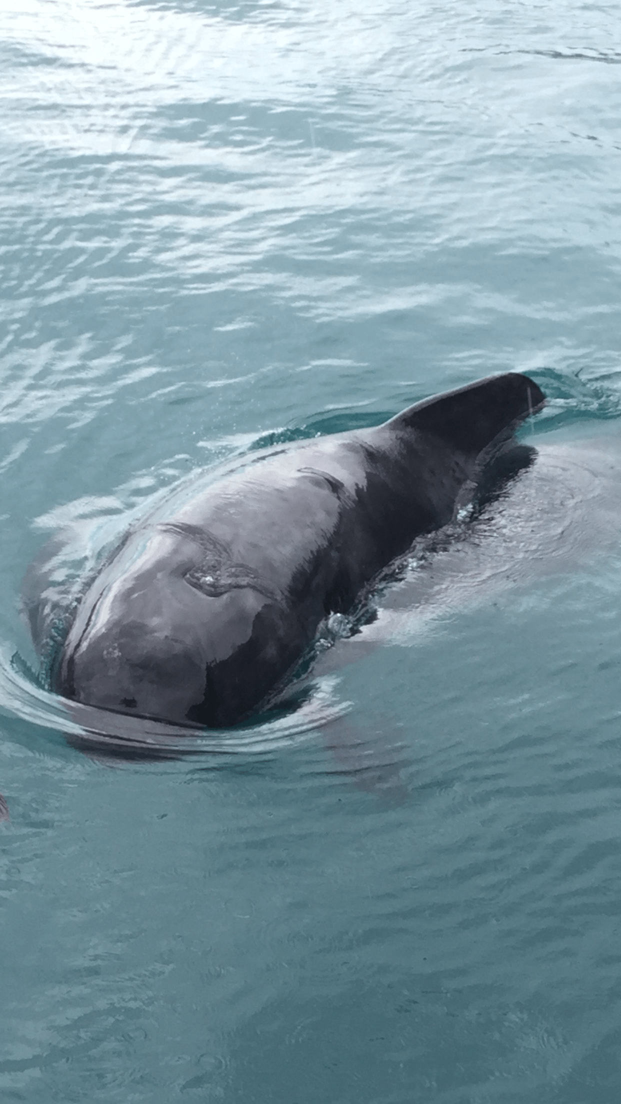 På vei inn til Svartisen opplevde vi noe fantastisk. En kjempediger grindhval på 6-7 meter kom helt inntil båten. Den la seg under lettbåten og strøk seg med buken opp mot bunnen, og dunket i roret som om den trodde det var en finne. Hunden Båtsmann tok helt fyr så vi måtte lukke den inne, hvis ikke hadde den hoppet på sjøen og endt som hvalbiff.